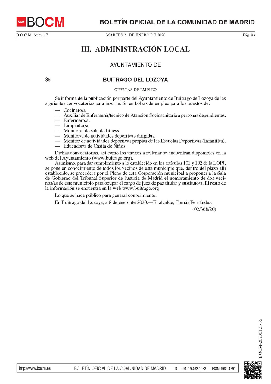 Empleo Público Empleo público 22 enero 2020 Visto: 1311 https://buitrago.org/tu-ayuntamiento/empleo-publico tweet