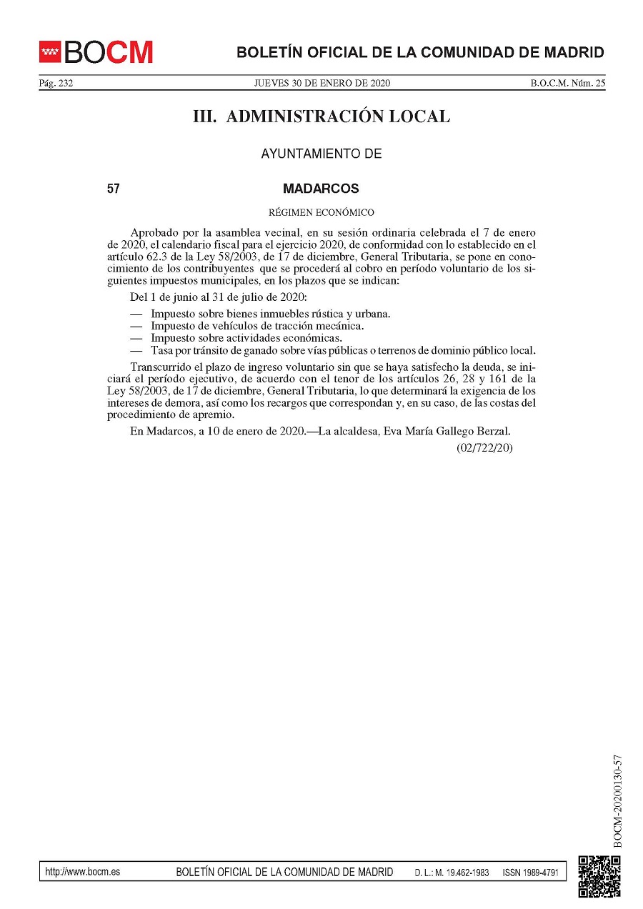 Publicado en el Boletín Oficial de la Comunidad de Madrid el calendario fiscal del año 2020